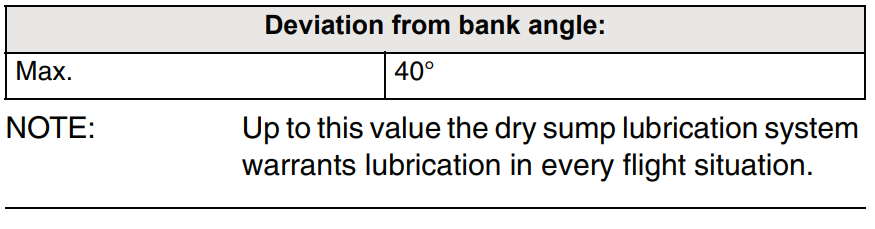 Angle of bank limitation for dry sump ROTAX 912 operation.